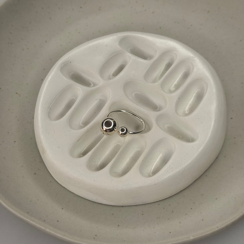 Anel Regulável - Duas Esferas - Joia Banhada a Prata