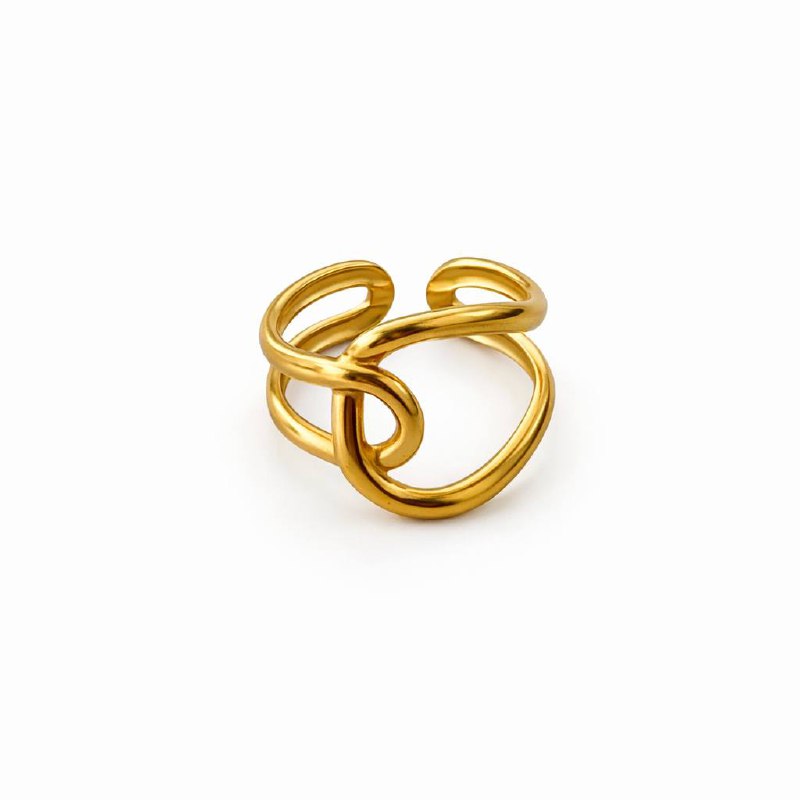 Anel Regulável - Orgânico Cruzado - Joia em Aço Banhada a Ouro 18k