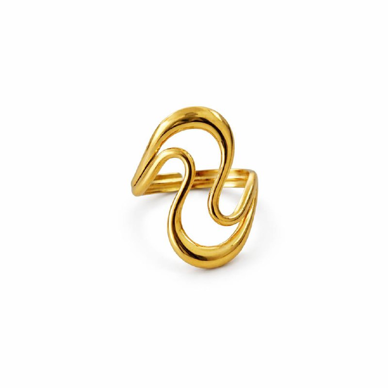 Anel Regulável - Orgânico Duas Ondas - Joia em Aço Banhada a Ouro 18k