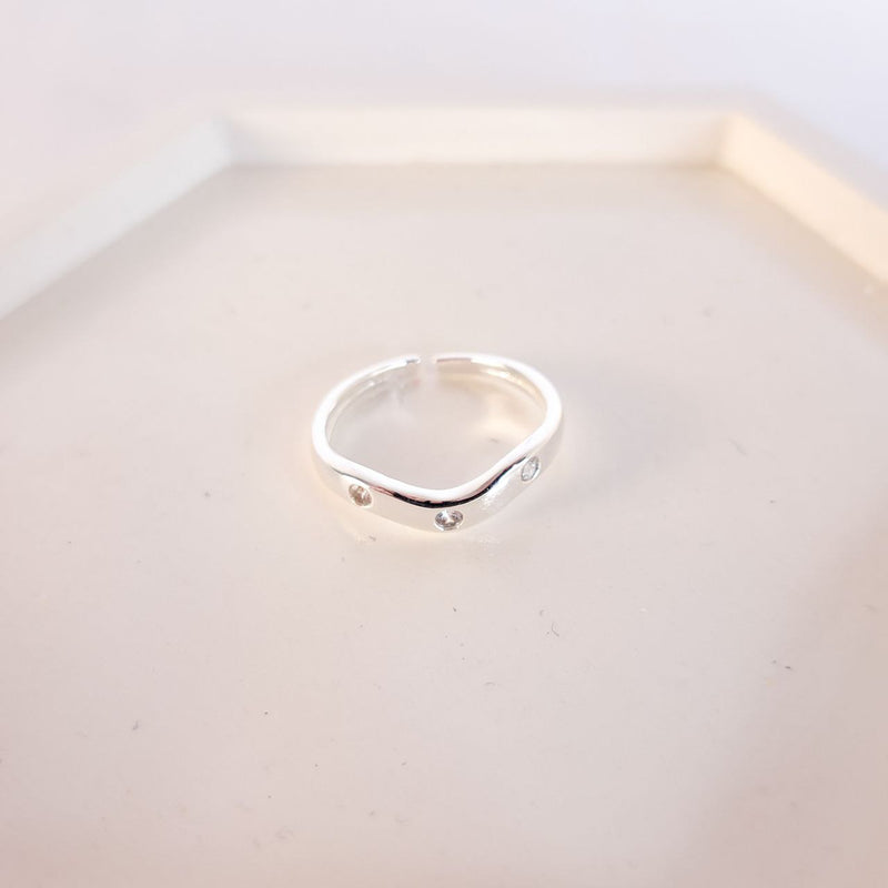 Anel Regulável - Wave com Strass - Joia Banhada a Prata