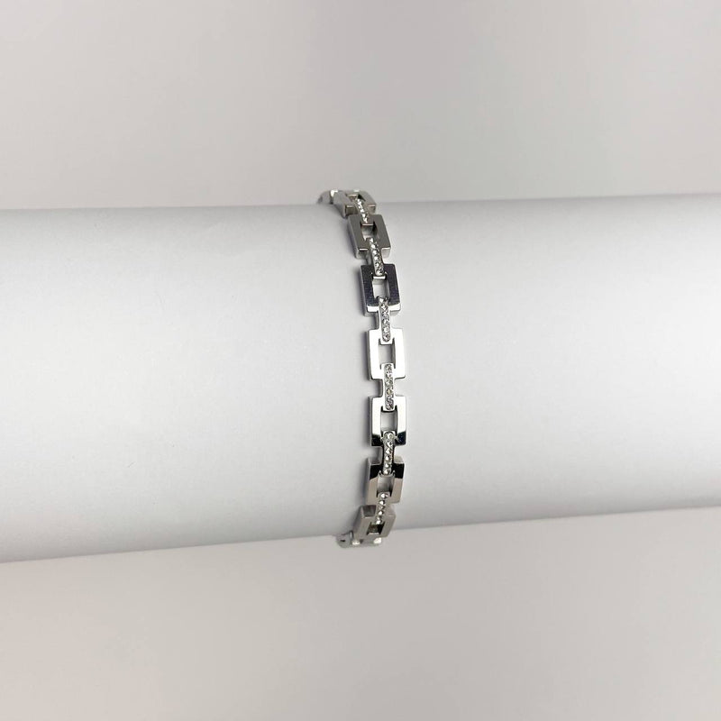 Bracelete - Corrente Retangular - Banhado a Prata