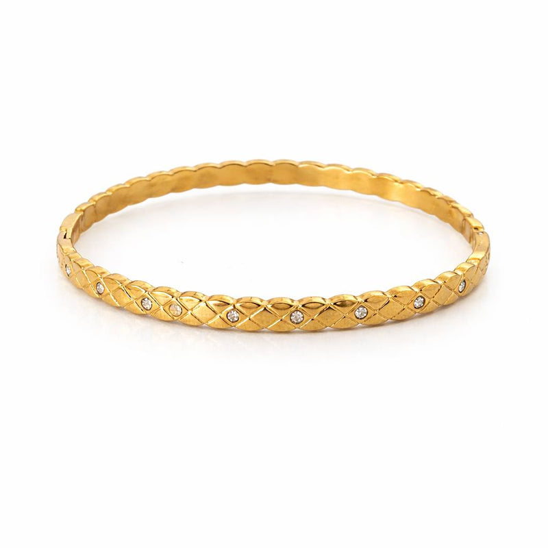 Bracelete - Riscos Cruzados e Pontinhos de Luz - Joia em Aço Banhada a Ouro 18k