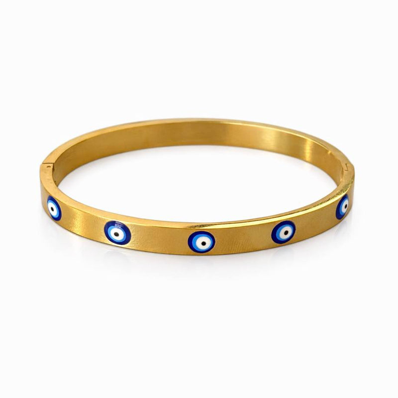 Bracelete - Olhos Gregos - Joia em Aço Banhada a Ouro 18k