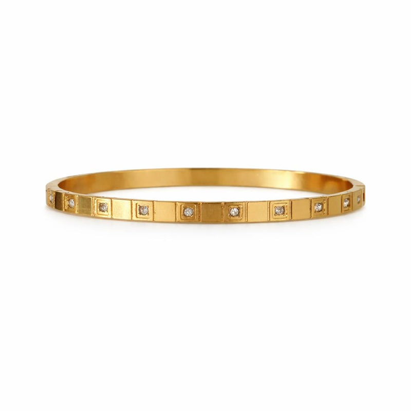 Bracelete - Quadrados Alternados Cravejado - Joia em Aço Banhada a Ouro 18k