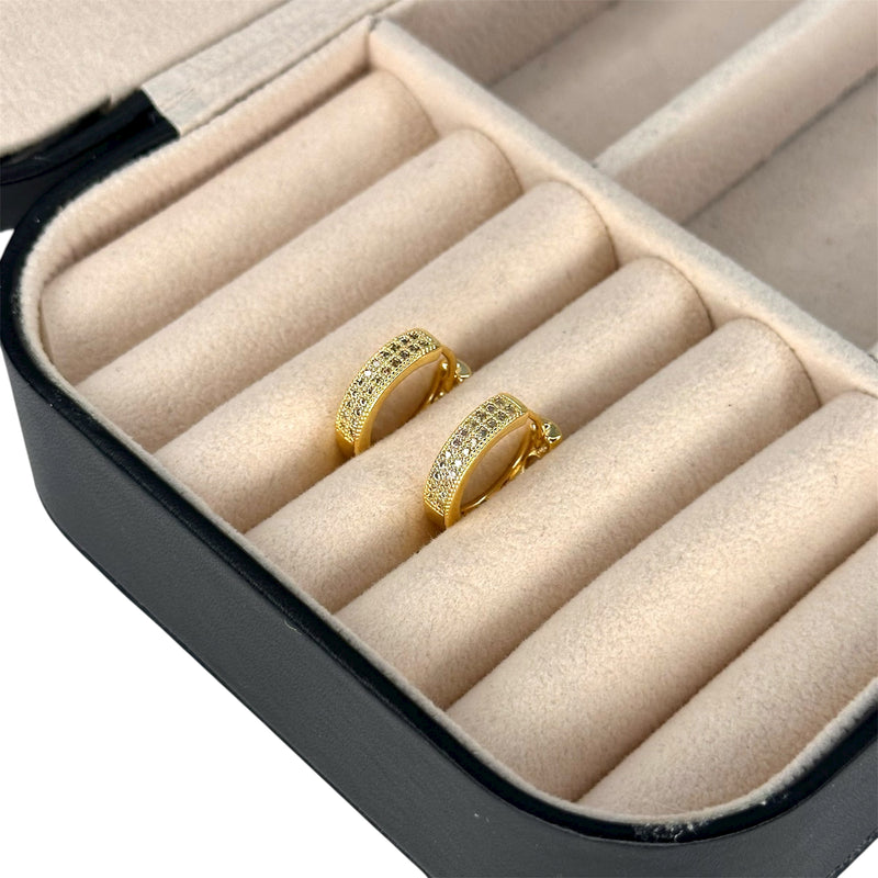 Brinco - Argola Fileira Dupla Cravejada - Joia Banhada a Ouro 18k