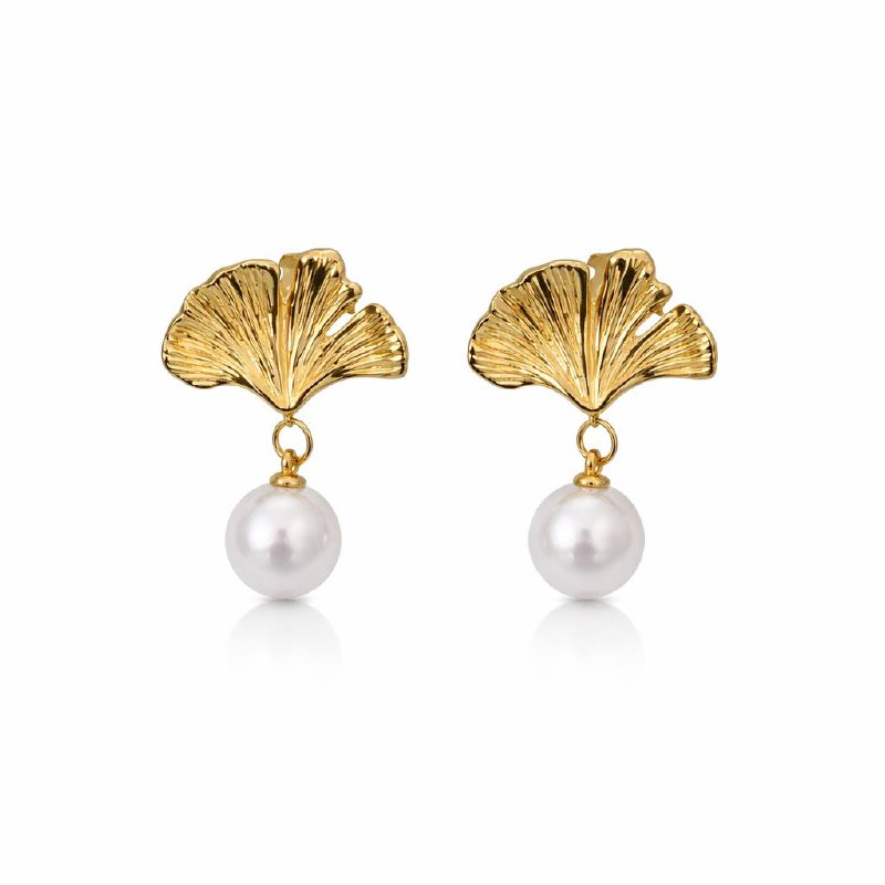 Brinco - Orgânico com Pérola - Joia em Aço Banhada a Ouro 18k