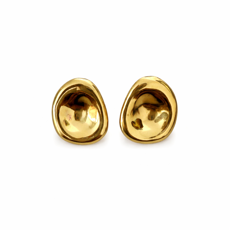 Brinco - Oval Orgânico - Joia em Aço Banhada a Ouro 18k