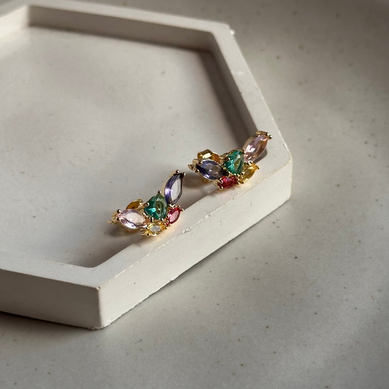 Brinco - Pedras Coloridas - Joia Banhada Ouro 18k
