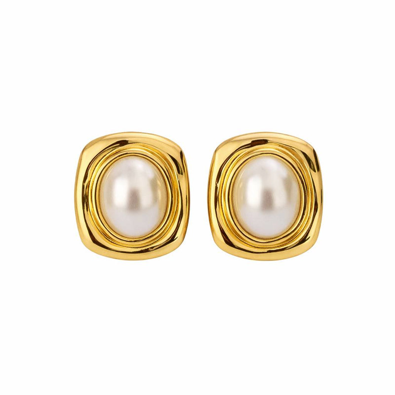 Brinco - Redondo Orgânico com Pérola - Joia em Aço Banhada a Ouro 18k