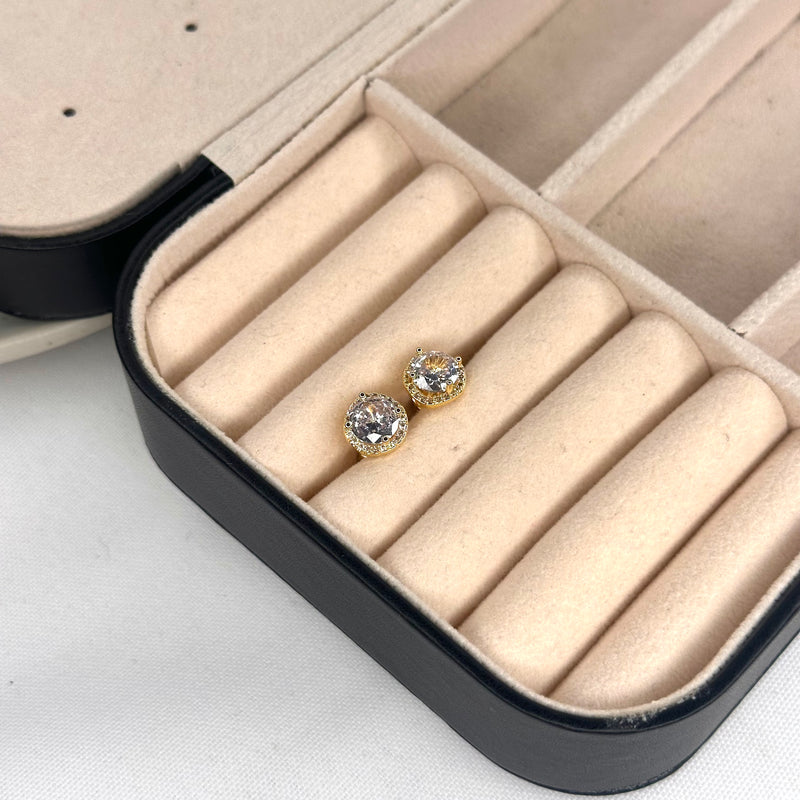 Brinco - Zircônia Redonda Cravejada - Joia Banhada a Ouro 18k