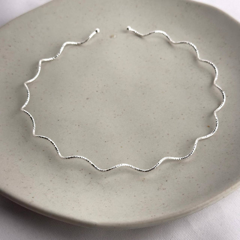 Choker - Aro Ondulado Texturizado - Joia Banhada a Prata
