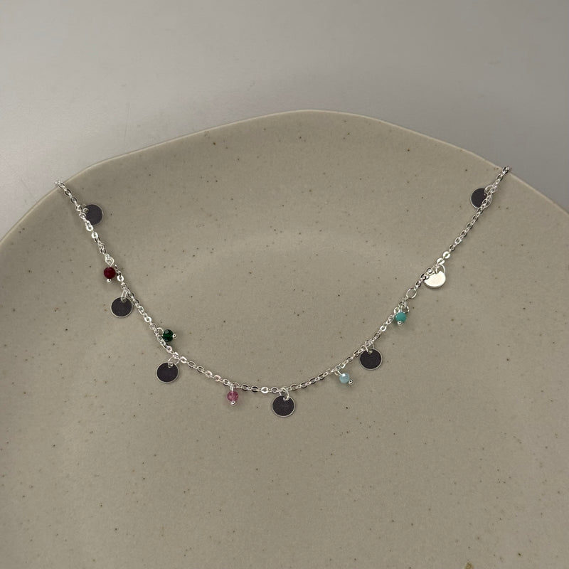 Choker - Miçangas Coloridas e Medalhas - Joia Banhada a Prata