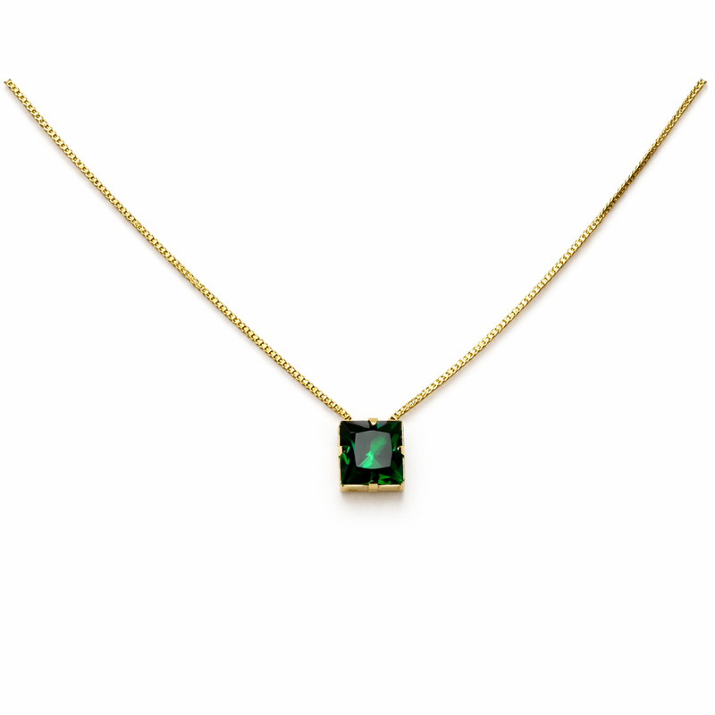 Colar - Esmeralda Quadrada - Joia Banhada a Ouro 18k