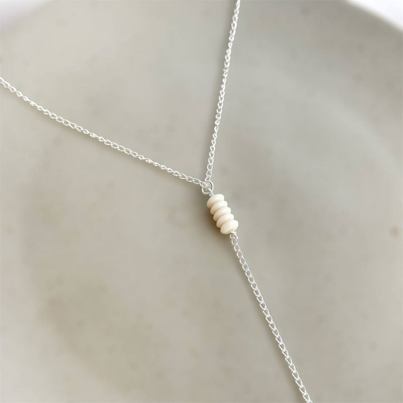 Gravatinha Elos com Miçangas Marfim - Joia Banhada a Prata