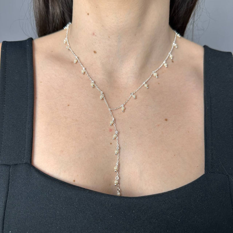 Gravatinha - Mini Pérolas Penduradas - Joia Banhada a Prata