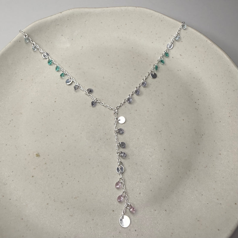 Gravatinha - Pedrinhas Coloridas - Joia Banhada a Prata