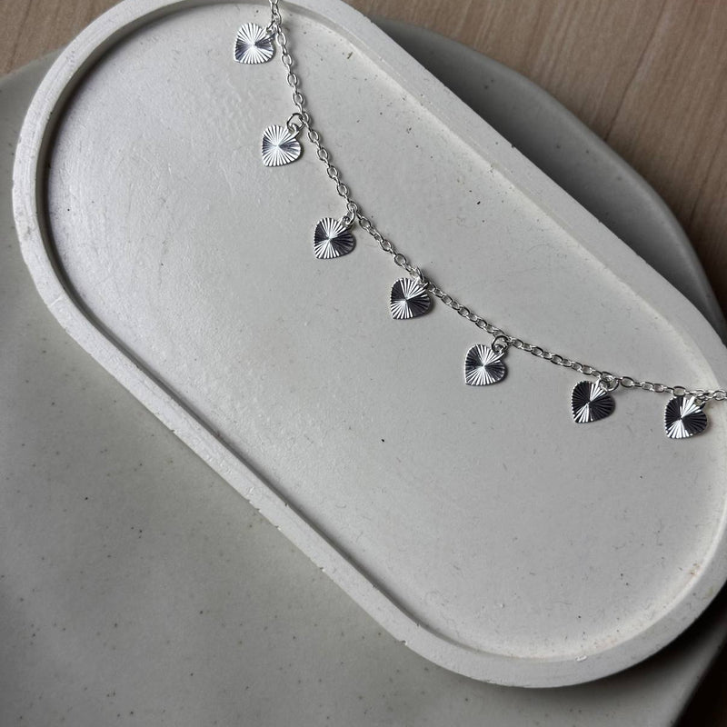 Pulseira - Corações Frisados - Joia Banhada a Prata