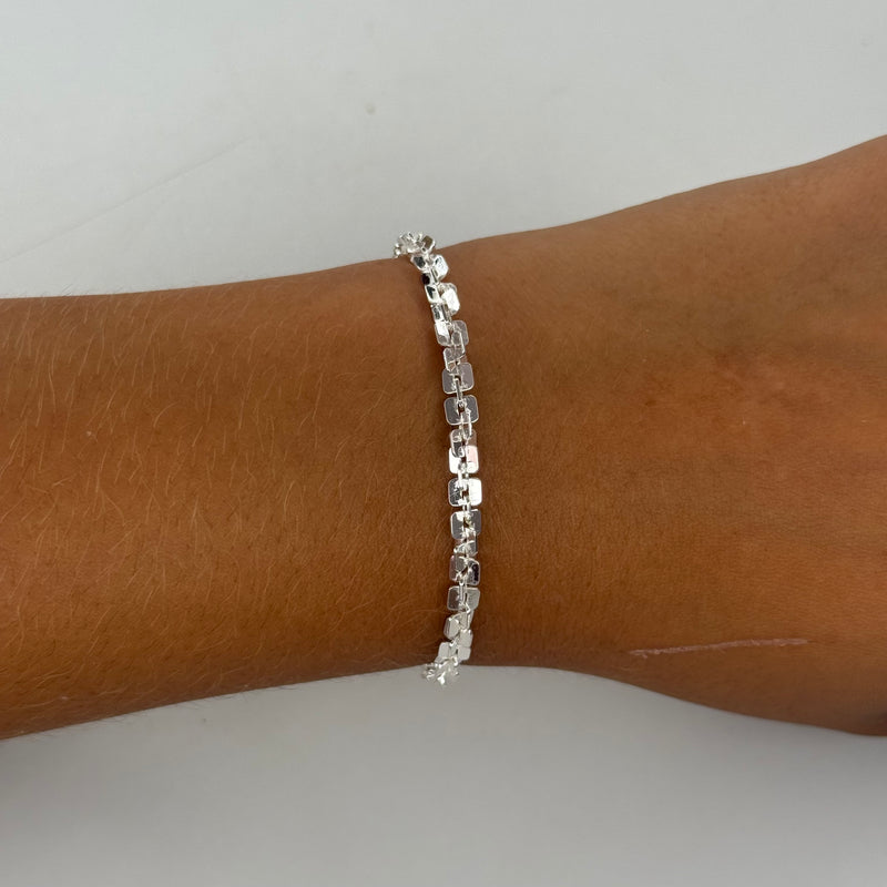 Pulseira - Quadradinhos Cruzados - Joia Banhada a Prata