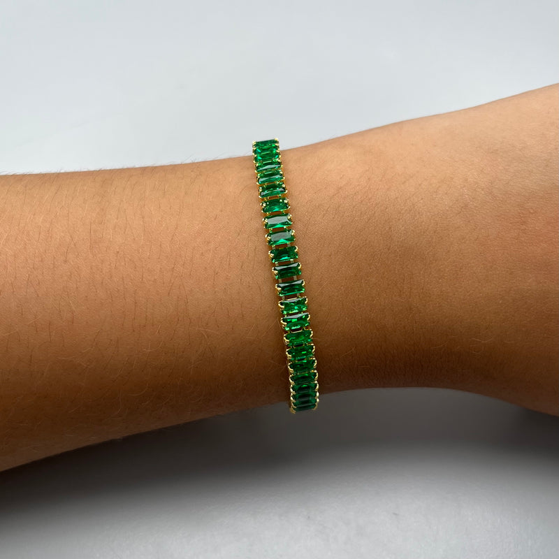 Pulseira - Riviera Baguete Verde - Joia Banhada a Ouro 18k