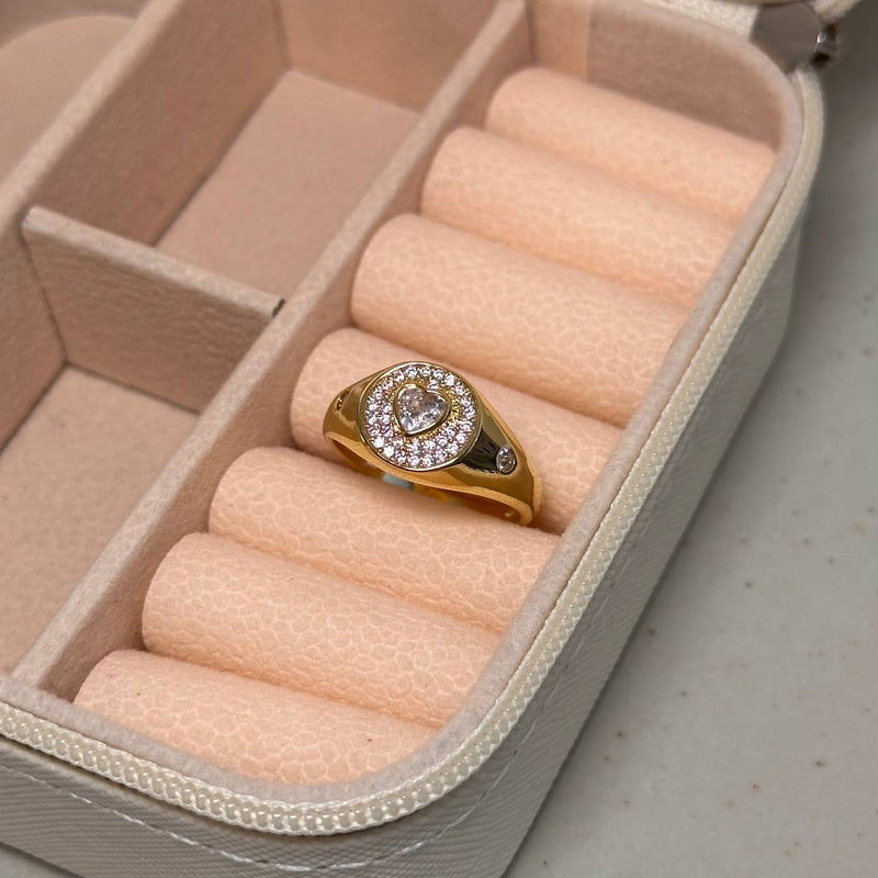 Anel - Coração Cravejado com Pontos de Luz - Joia Banhada a Ouro 18k